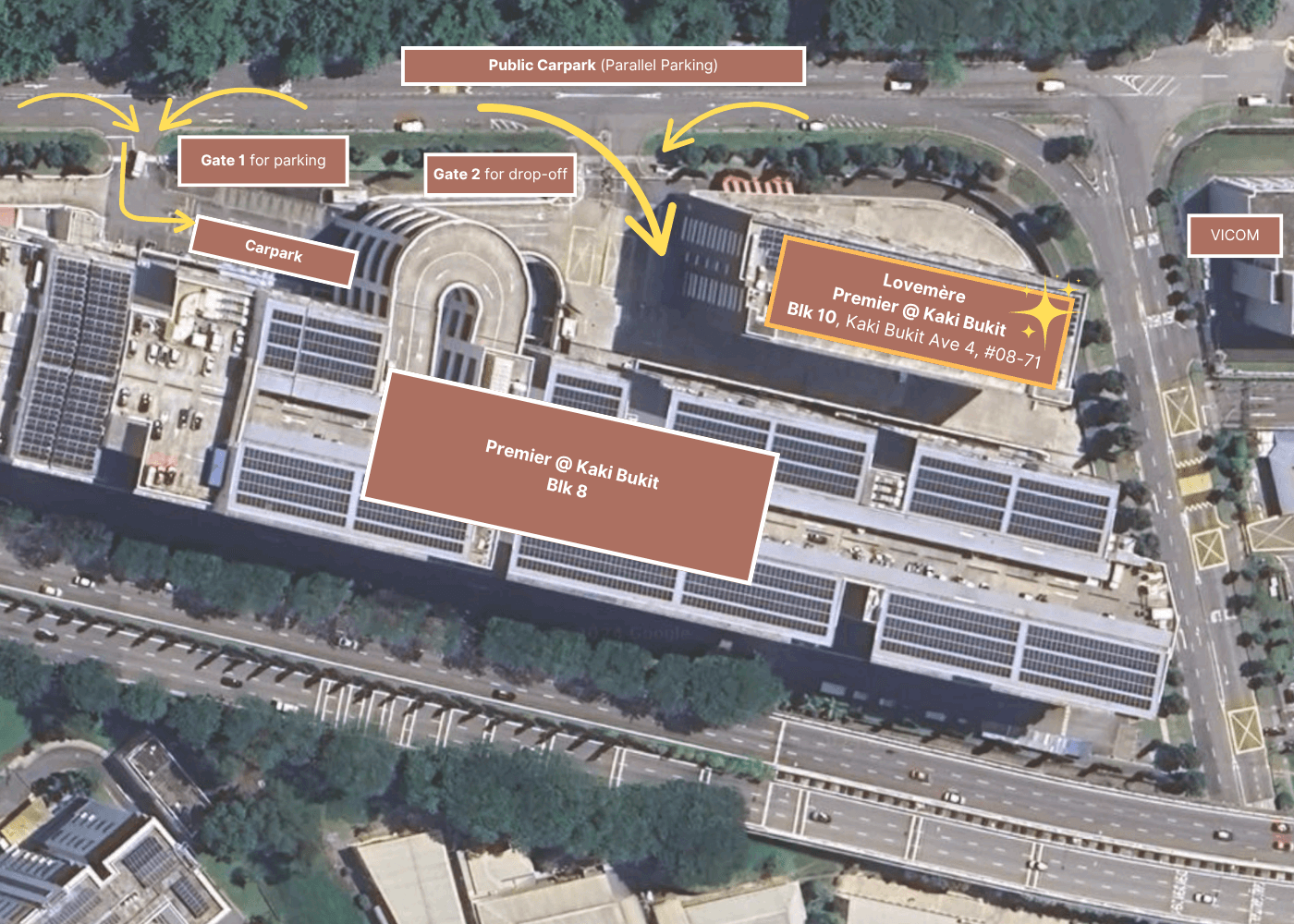 Drivers may park outside the building or enter Gate 1 for parking. For drop-offs, please enter via Gate 2. The lobby will be on your left. Drop us a whatsapp if you need assistance.