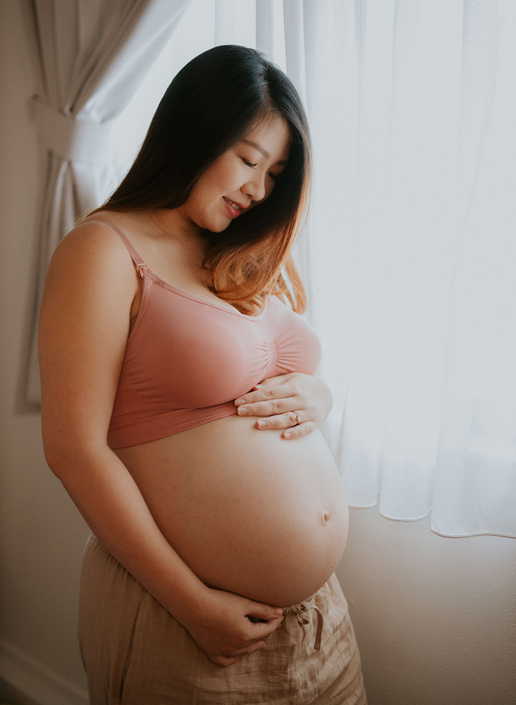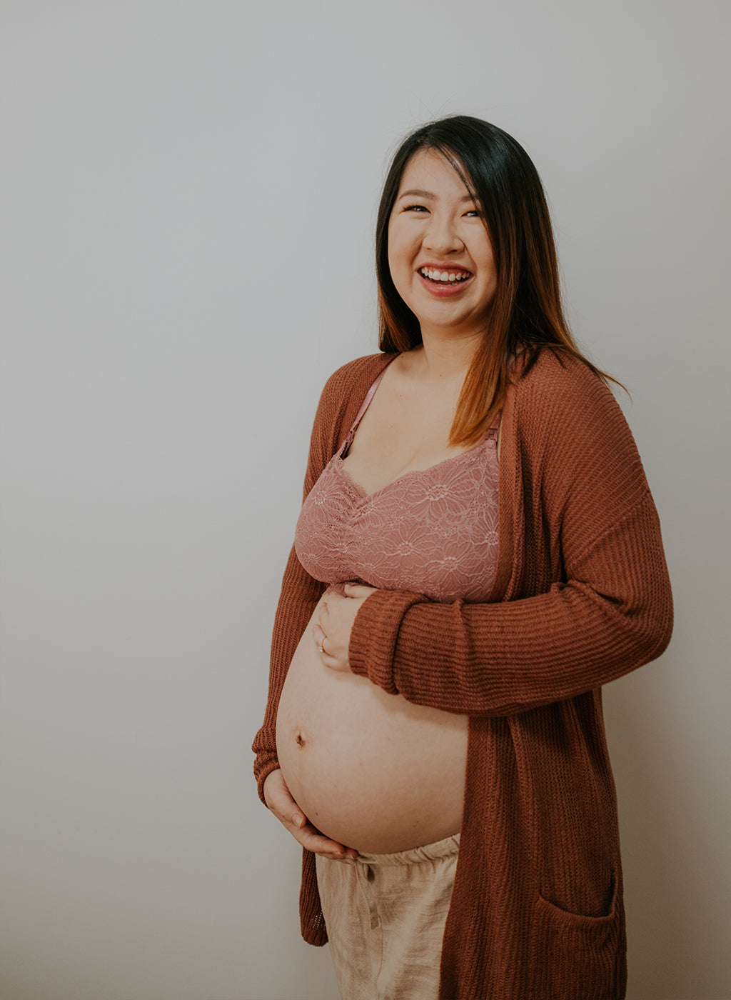 Jiehui wearing Love, Juliette Nursing Bralette at week 32.